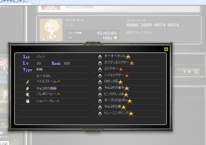 …って、SEMにログイン&連動してる人じゃないと装備他が表示されないのか。