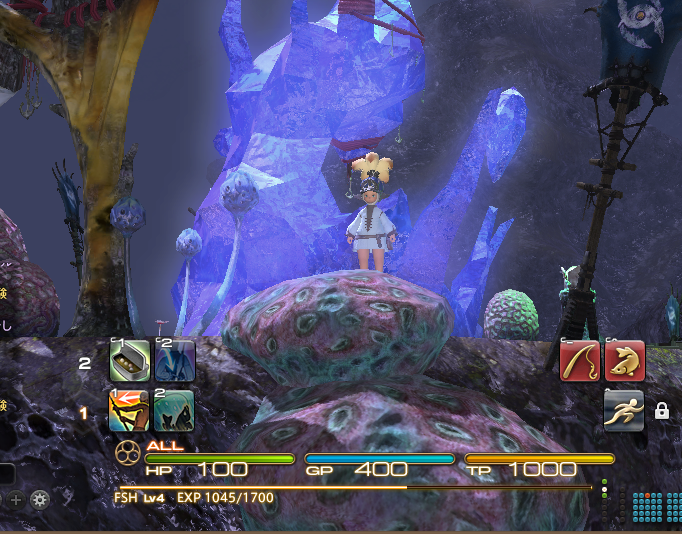 見ての通りなったばっかりの、ヘッポコ漁師で、サハギンエリア(レベル50)で釣りますとも。